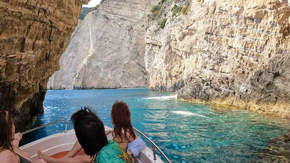 - Eros Cave (Love Cave). Your final destination is the romantic Love Cave, a natural sea arch and cave formation where sunlight reflects beautifully on the blue water. A perfect stop for photos, a swim, or simply soaking up the magic of Zakynthos.